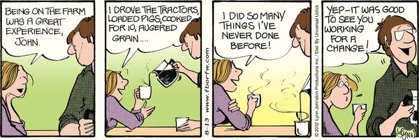 Lynn's Comments: During the harvest, we had to get a full meal plus cold drinks and dessert out to the fields every lunch hour. The hired men needed lots to eat, and real home cooking was expected. When I had the chance to drive the swather, tractors, trucks, or combine, I took it fast. Sitting in an air conditioned cab and going around in circles beat the hot kitchen job any time.