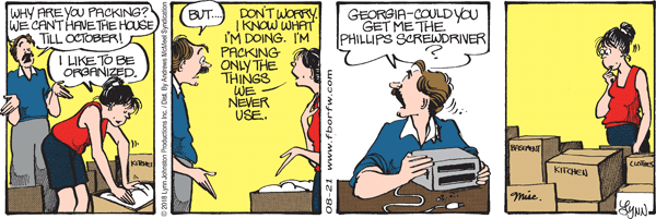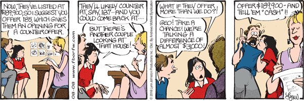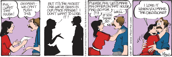Lynn's Comments: Whenever I added a new character to the strip, it added to the complexity of the story. Mrs. Grunion promised to be a lot of fun to work with, but she would have cut into the other characters’ roles. Since I only had one statement a day in which to tell a story, I had to gloss over some potentially great characters. After I retired and we were doing an assessment, my archivist, Stephanie, told me that during my career in syndication, I had created over 90 characters! Wow. This was something I never knew.
