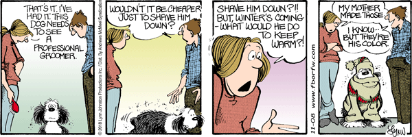 Lynn's Comments: Richard and Ted’s was a real auto body shop near our home in Northern Ontario. It was fun to give the guys a nod in FBorFW…trouble was that I had only one original comic strip and two guys who wanted it!