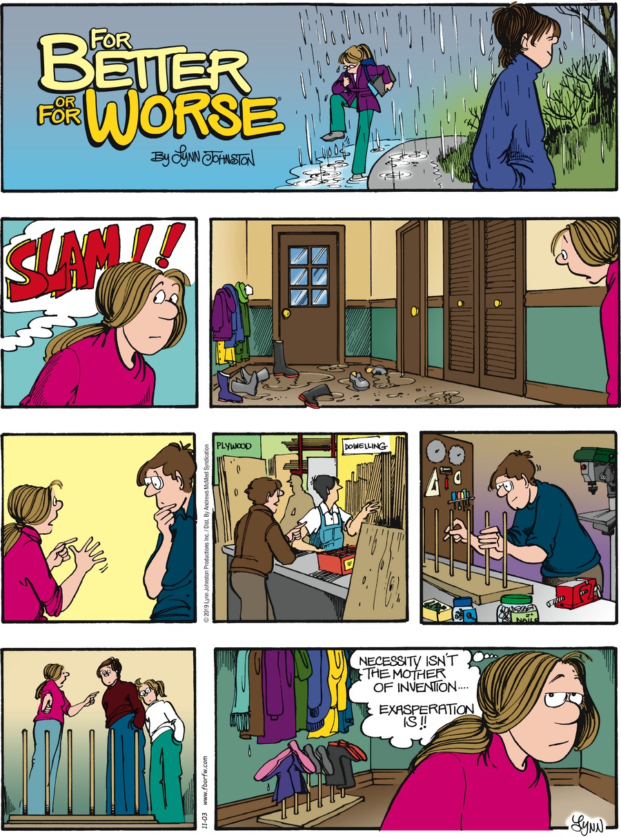 Lynn's Comments: After I drew up this strip, I actually found a boot drying rack just like the one I drew here. It was home made. My guess is that some enterprising company is making them out of plastic now!