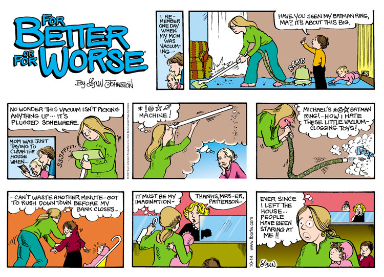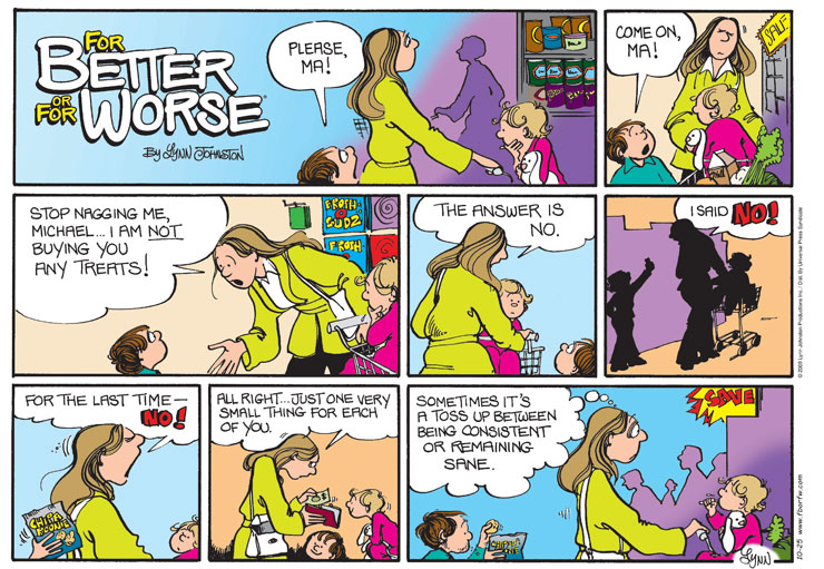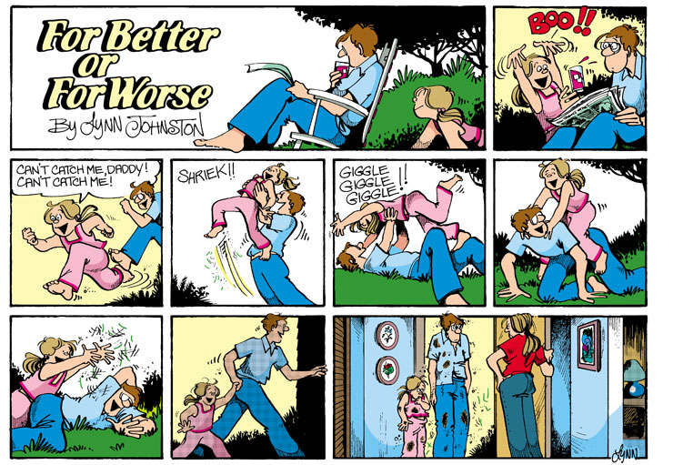 It was hard not to perpetuate the errors. Talking baby talk to our offspring was not our style, and yet we loved the sounds and the new words they invented as they learned how to communicate. It was interesting to see how a newfound ability with language made for nonstop talking. You can't wait for them to be able to tell you what they're thinking ... and, later - you're wishing they'd be QUIET!!! The dialogue in this strip went exactly as written, except that I kept the punch line to myself!