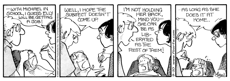 Lynn's Comments: Here's where the "soap opera" comes into FBorFW. There had to be some romantic conflict in the story, so when Connie moved away, I enjoyed exploring some of the "what-ifs." Would people like John and Ted meet and talk like this in real life? Maybe not. Still, it was a way to answer some of the questions a sympathetic fly on the wall might ask: What if Ted felt badly? What if he realized his mistake? Exploring questions like these gave me the incentive to produce and to stay on deadline.