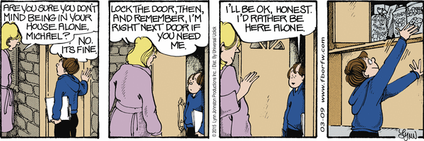 Lynn's Comments: The strip was starting to realistically show a family's weaknesses as well as its strengths, which I think made it more believable. I was trying to show real life: What happened to me and to the character, Michael, happens all the time. In an ideal world, I guess someone should be there to chaperone a child at all times, but like me, Mike was a responsible kid who was capable of helping out. Sometimes we could all use an extra hand to help make ends meet!