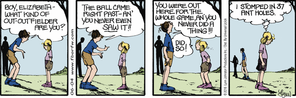 Lynn's Comments: What I stomped on was wasps' nests! Ground wasps were plentiful, and when I found one, I'd place a rock over the hole, twirl around on it and run before the returning wasps could see what had happened. It was a game of chicken, and much more exciting than the game I was supposed to be playing!