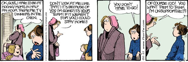 Lynn's Comments: Our dog Willy would wait until we had finished eating before he dug into his kibble. If there was the smallest chance of leftovers, he wanted to be sure he had room. I did this strip with compassion and understanding—I wouldn't want to eat the same thing everyday either!