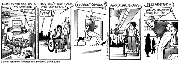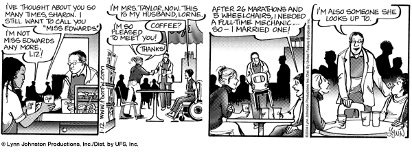 Lynn's Comments: Miss Edwards' character gave me the opportunity to talk to and seek out the advice of people who used a wheelchair. It was a wonderful education!