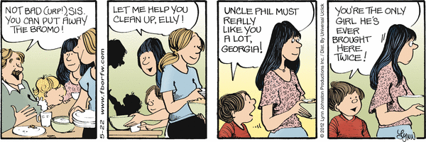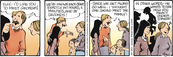 Lynn's Comments: As this strip was going to press, my brother Alan had started to go out with a lovely lady named Joan. I had been so close to guessing details about his relationships in the strip that when he saw this, he asked me not to have Phil and Georgia get married until after he married Joan!