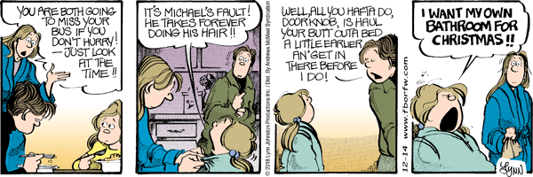 Friday December 14, 2018 Lynn's Comments: A friend (who had been married for many years) told me that the one thing that helped to guarantee her happy, long lasting marriage was…separate bathrooms!