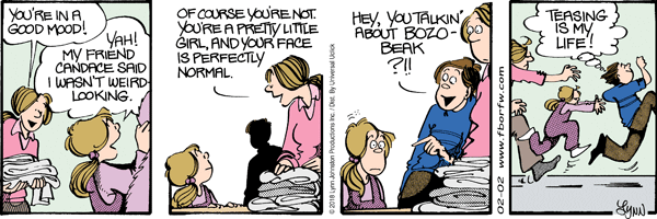 Friday February 2, 2018 Lynn's Comments: My brother and I were expert teases. We savoured every "gotcha" and every "Aaaughh!!!!" We added them up, we made sure we were even. I don't think we stopped until we were in our twenties!