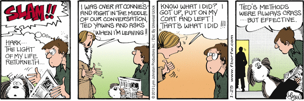 Lynn's Comments: My affinity for the art of George Booth comes out in the way I draw interaction between people and pets; George was able to make the funniest of statements with body language and a simple, knowing glance. Although I only met him once, he has been one of my best teachers!