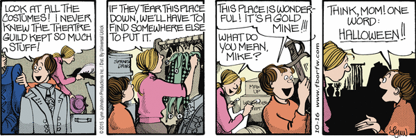 Friday, October 16, 2015 Lynn's Comments: One year, the theatre did sell off a lot of the costumes. It was an opportunity of a lifetime for those wanting an Edwardian dress or a set of feathered tights. Sadly, it was because there was no money for proper storage.