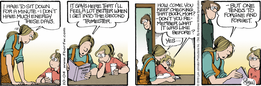 Friday October 4, 2019 Lynn's Comments: As Elly became rounded, I became more and more preoccupied with how she looked and how she felt. I began to feel what she was feeling, and had to keep reminding myself that this was happening in the comic strip and not to me.
