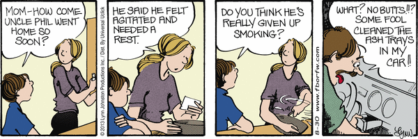 Lynn's Comments: Alan was always trying to quit. This and a serious lack of funds kept him without a reliable supply of smokes. He might say I'm making this up...but I do remember him sifting through the household refuse looking for salvageable butts. This is clear in my memory because despite my objection to smoking, I truly felt sorry for him!