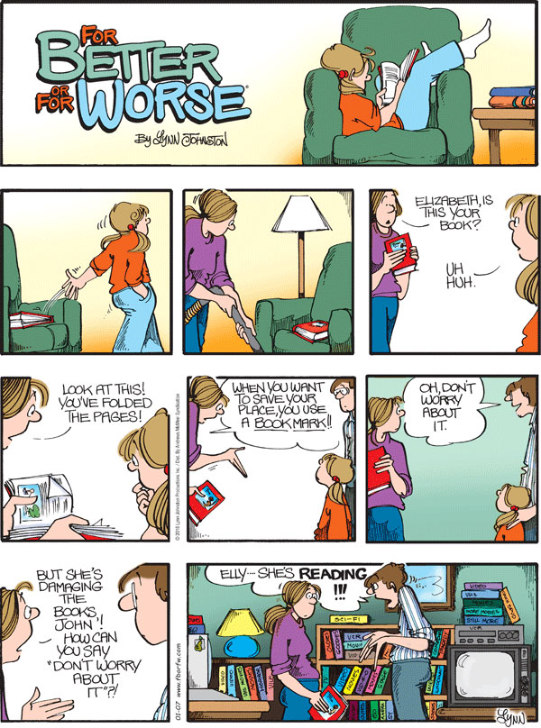 Lynn's Comments: I was going to write something about reading being far too important to allow TV and other devices to rob us of this essential skill. But I think I'll just let the strip speak for itself.