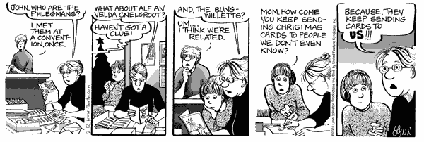 Lynn's Comments: By listing their names, I was able to say "hello" to a number of dear friends in this strip. When it appeared in the paper, I looked forward to their inevitable calls. So often my friends would say, "you'd better not put me in the paper!" But when I did, they were always thrilled.