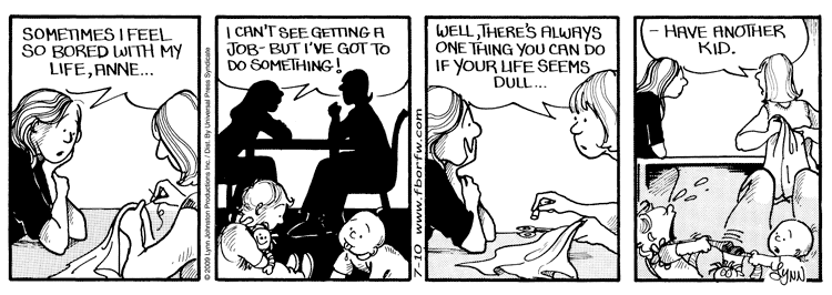 Lynn's Comments: When Aaron was born, Farley the dog was well established as part of the family. Certainly my first introduction to "training" another living thing was the DOG, and from time to time, I clapped my hands and shouted "NO!" to both kid and canine. (I stopped at spraying the kid with water or using a choke chain). Aaron was crawling around the same time he was teething, so kibble and other Farley fare was readily available. When I discovered Aaron teething on a Milkbone and enjoying the grit on his gums, I happily allowed him to indulge. Milkbones, after all, didn't disintegrate into mush like other teething biscuits and it was cheap. The smell of it on the breath of both my charges didn't bother me in the least. Compared to some of the other odors emitted, this was "kissing sweet".