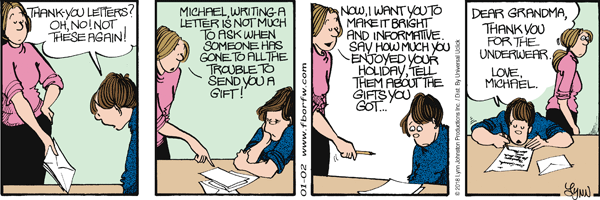 Lynn's Comments: My parents insisted we thank (in writing) everyone who sent us a gift. At the time, we thought it was a miserable waste of our time. Now, I know it was an investment in the relationship between myself and the kind person who had been thoughtful enough to send a gift.