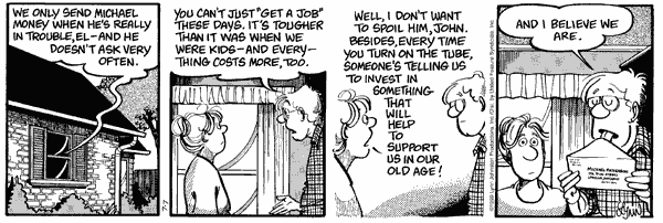 Lynn's Comments: This is one of the strips I actually used in an effort to find someone. The names "Stan, Gretchen, Barb, and Kenny" appeared on a Christmas card with no last name and no return address. I never did find out who they were ... so if you're reading this, folks, and you sent a card to the Johnstons in 1983 ... this is why you never got one in return!