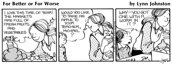 We waited and did become friends. Three years later Sheena Baker, another teacher of Aaron's, wrote a book called "There's a Worm in My Apple" and I illustrated it. The book's inception was due to my numerous interviews with her, at the school...regarding my son!