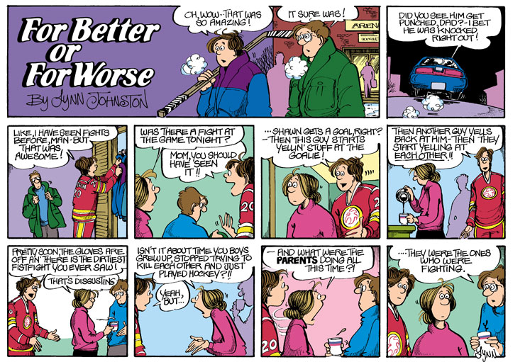 Lynn's Comments: This happened, too. Some of the nastiest behaviour at the kids’ hockey games came from parents in the stands.