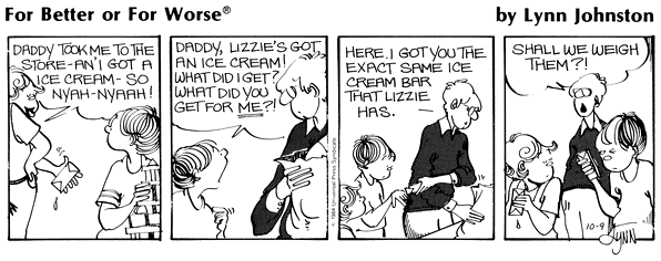 Lynn's Comments: My mother joined a weight loss program for which she needed one of those tiny food scales. After buying both Alan and me a pack of Smarties, she actually weighed them to prove that neither of us was getting more than the other.