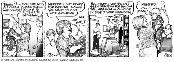Lynn's Comments: This was another of my son's off-hand remarks. If he knew how many of his comments became punch lines for the strip, I think he'd have asked for a byline!