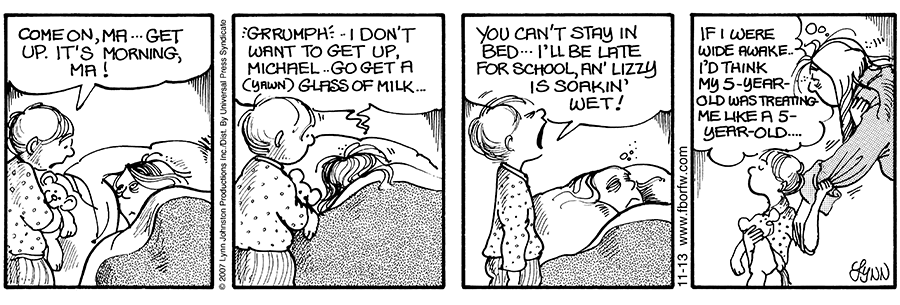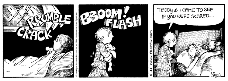 Lynn's Comments: I think the idea for this one came more from my babysitting days than it did from our family. The people next door to us on 5th street had four little girls. They were sweet, well behaved kids, but the excuses they made to keep from going to bed were inventive, effective and unending. When one was down, another was up with a request or a need or a fear or SOMETHING! This was all so frustrating- both because my disciplinary skills were rudimentary and because Mrs. Benn always left chocolate cake in the fridge and I couldn't get to it until the kids were asleep. I always wondered how they could stay awake for so long when they were so tired...but I think we did the same thing to our babysitters... a rite of passage for the sitters and the sat!