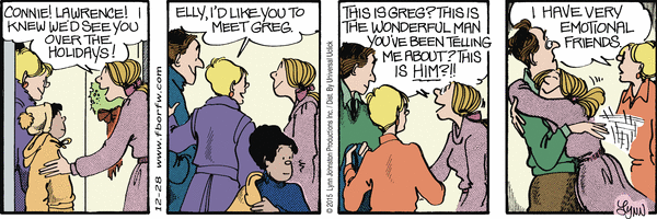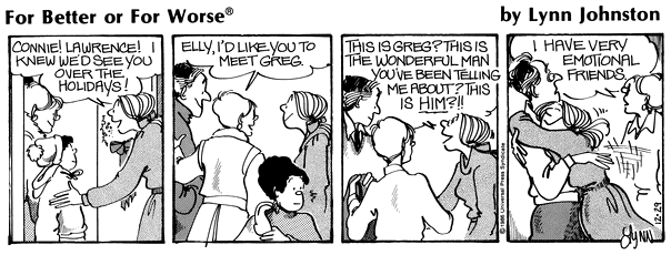 Lynn's Comments: It was hard to introduce a new character into the strip. I had to make a number of sketches: front, side, three quarters. I drew the character laughing, frowning, shouting, and calm--all in an attempt to keep him or her consistent whenever they were in a scene. I didn't always succeed. "Greg" changed from time to time, and readers would quickly tell me when I made errors.