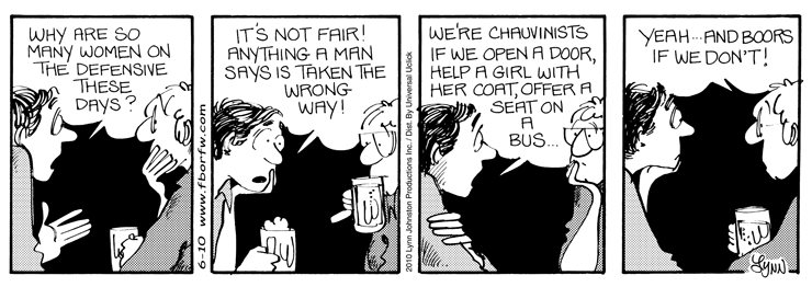 Lynn's Comments: I went to a bar with one of the women from the workshop, to celebrate our new friendship and to mourn the end of a wonderful event. We were in our 30s, and guys at another table made suggestive comments and lewd gestures the whole time we were there. I remember thinking, "I make smart-*** comments for a living, but I can't think of one clever put-down to fling at these Neanderthals." It was frustrating!!!