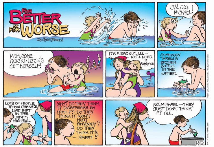 When Katie cut her foot on a broken beer bottle at the beach one weekend, I penned this Sunday page - and the response was immediate. I received a lot of mail from folks who feel the same way I do - and it occurred to me: with so many people angry, frustrated and disgusted by littering, why do we still have so darned much of it??!!
