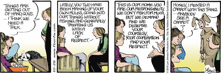 Monday October 28, 2019 Lynn's Comments: Halloween was always a great excuse to do some funny drawing. I would have loved to own this goofy rabbit suit. With my job, I could pretend that I did!