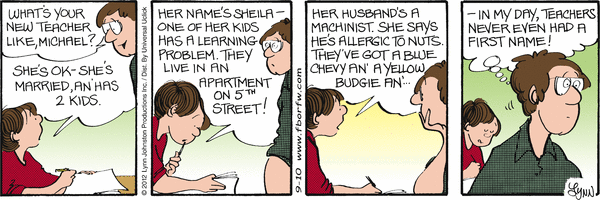 Lynn's Comments: When my children started going to school, I found it interesting to hear them talk about their teachers' private lives. Teachers talked about their children, their summer holidays, their childhoods, and so on. In short, they admitted they were real people! I think this helped my kids to relax, to trust, and to enjoy their classroom experience.