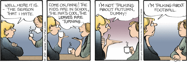 Monday, September 20, 2010 Lynn's Comments: I was once married to a guy who spent so much time on the couch watching televised sports, I suggested we give away the couch, screw legs on him and use HIM as furniture.