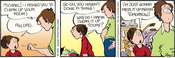 Monday, September 3, 2012 Lynn's Comments: This is the truth. As a kid I said the same thing. Kids clean up their rooms to please their mothers and as a mother, I felt I deserved this small effort!