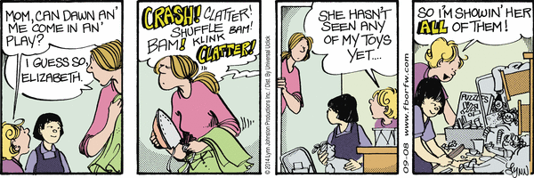 Lynn's Comments: The Enjos provided both Elizabeth and Michael with friends to play with--I wanted the whole family to integrate with the Pattersons. This is always the hope when new folks move into the neighbourhood, and I could make it happen in the strip!
