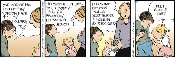 Lynn's Comments: Here, Michael decides to come clean about the money he's lost and Elly treats the whole situation like the lesson that it is. I got letters. Folks complained that I had made Gordon look like a thief, that he wasn't "that kind of kid!" They thought Elly should have gone to Gordon's parents and complained. They didn't know that Gordon's dad was at the pub and not likely to be home before dinnertime. They didn't know that his mom worked two jobs to make sure that the bills and the debts were paid on time. Behind every character was another story altogether--a story I had no time to tell!