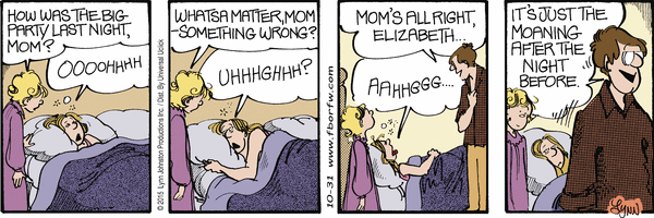 Saturday, October 31, 2015 Lynn's Comments: You'd think a lesson learned once would be ingrained forever. Not so: the hangover. Even without a partying lifestyle, I think I still average one every five years.