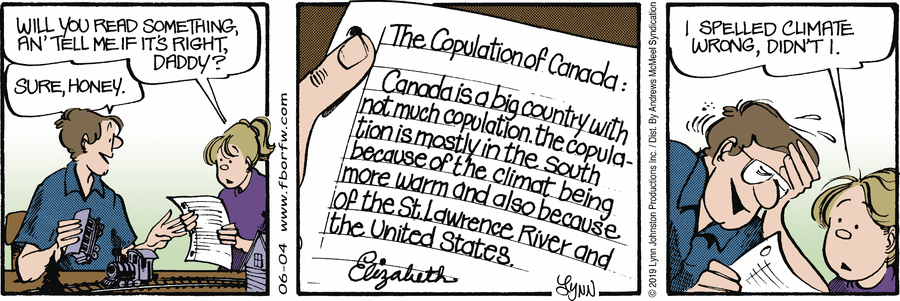 In this strip, the idea came from my mother, who told me she had once, in grade school, mixed up the words population and copulation on a test. Yup! …Good stories deserve to be retold!