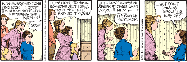 Lynn's Comments: I did this. I had become somewhat good at wallpapering and offered to do my mother-in-law’s kitchen. She chose a Lily of the Valley pattern, and it wasn’t until I’d finished the entire room that she noticed the blossoms were upside down!
