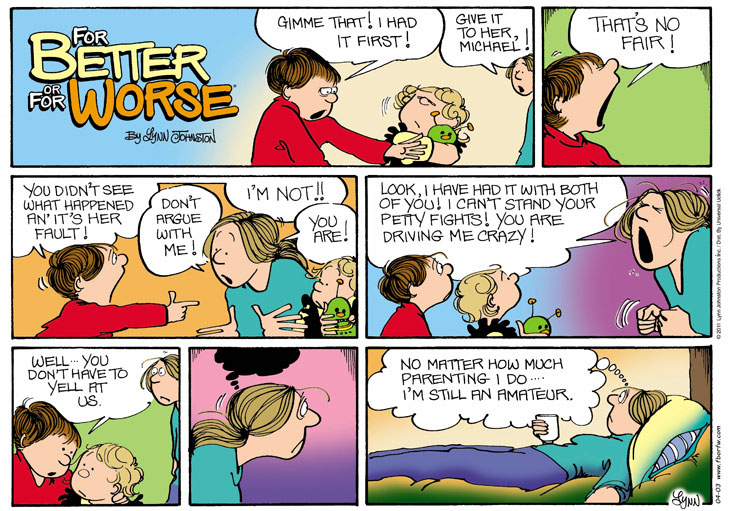 Lynn's Comments: I don't know how many times I sat alone after some frustrating bout with the kids, wishing I had "done it better". It's hard to do something better if you're doing it for the first time - and considering how many firsts there are in parenting, you're bound to make a few mistakes along the way. Books, professionals, friends and family can advise you, but in the end this is your responsibility, your environment, your rules - and everyone has to learn to get along.