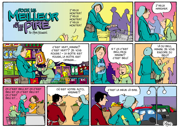 It was hard not to perpetuate the errors. Talking baby talk to our offspring was not our style, and yet we loved the sounds and the new words they invented as they learned how to communicate. It was interesting to see how a newfound ability with language made for nonstop talking. You can't wait for them to be able to tell you what they're thinking ... and, later - you're wishing they'd be QUIET!!! The dialogue in this strip went exactly as written, except that I kept the punch line to myself!