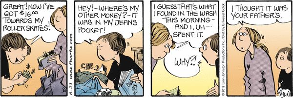 Thursday, June 21, 2012 Lynn's Comments: This is an invented scenario. The only cash I found in the dryer was small change...but a cheque, now and then, did make its way into the laundry. Too bad cheques aren't made from the same semi-washable material as paper bills!