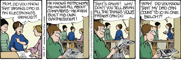 Tuesday, February 17, 2015 Lynn's Comments: When this strip appeared, I was criticized for stereotyping the Enjo family: they were Asian, therefore they were intellectuals. It was interesting to note that the complaints didn't come from people of Asian descent!