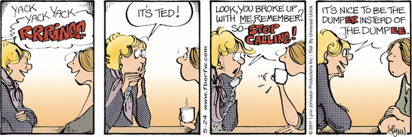Tuesday, May 24, 2011 Lynn's Comments: The line "dumper-dumpee" occurred to me when I was a single mom. I was commiserating with my friend, Adrienne, who was in the same boat. Our husbands had "dumped" us both and we wondered if WE'D ever be the ones to say "goodbye".
