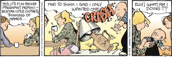 Lynn's Comments: My friend Mary seemed to have a bun in the oven every year. When baby number seven was on the way, she sighed and said she wondered if this one would be the last. I assured her it was indeed the last one and she wondered how I knew. "Well", I said, "your husband was one of seven kids and he told me he wanted the same number of children, too".
