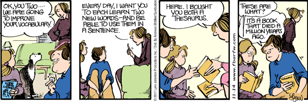 Lynn's Comments: My mother did this. She bought my brother and me each a thesaurus and we were to learn a new word each day. Far from resenting this project, we enjoyed it. If you want to express yourself well, you need a vocabulary!