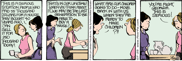 Wednesday July 25, 2018 Lynn's Comments: It’s interesting to be reading this in 2018—a time when house prices have skyrocketed far beyond our wildest predictions, at least in Vancouver and Toronto.